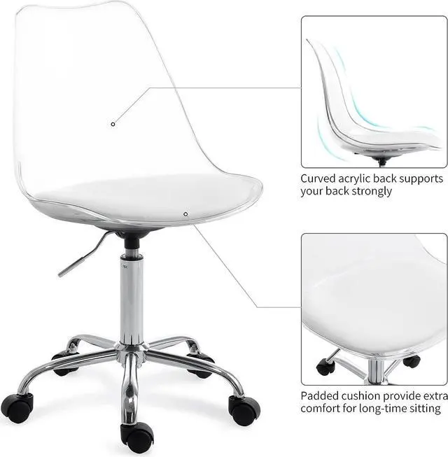 High Quality Materials: The clear appearance of armless desk chair shows a fresh and modern feeling, and the acrylic material has high toughness and not easy to crack. The smooth surface is easy to clean, so you don' t have to worry about getting dirty