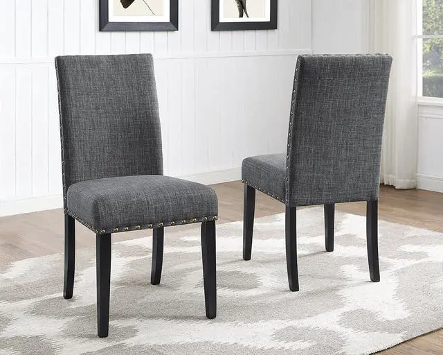 Set of 2 enticing nailhead trim dining chair, soft fabric upholstery on the seat and chair back.