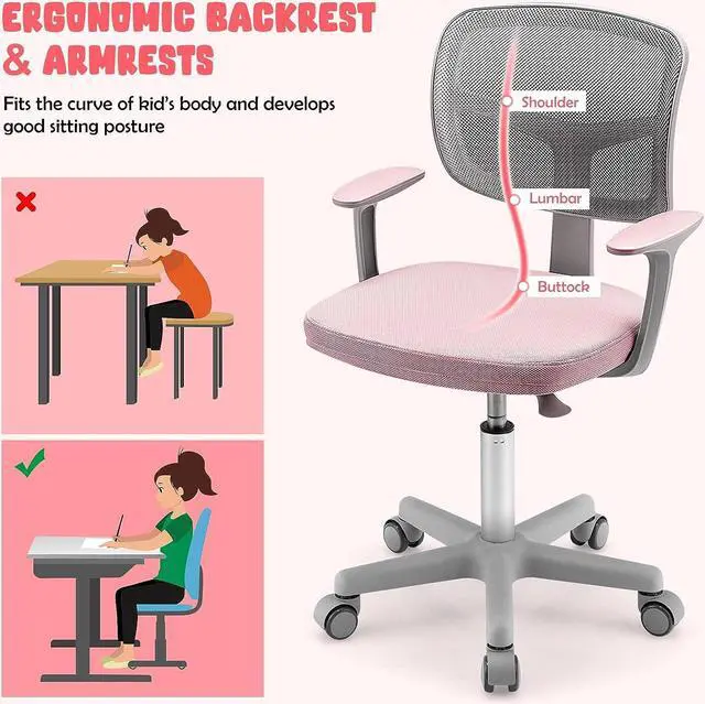 Ergonomic Desk Chair for KidsY-shaped support, ergonomic backrest and armrests can well support kids back, waist and arms. And this task student chair can perfectly fit the curve of kids body, effectively reduce kids back stress and help them to develop good sitting posture. Your kids wont feel tired after sitting for a long time.