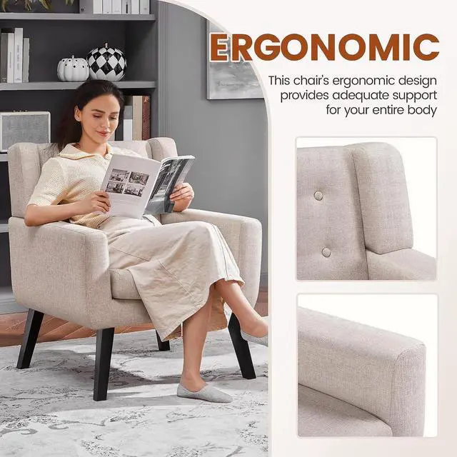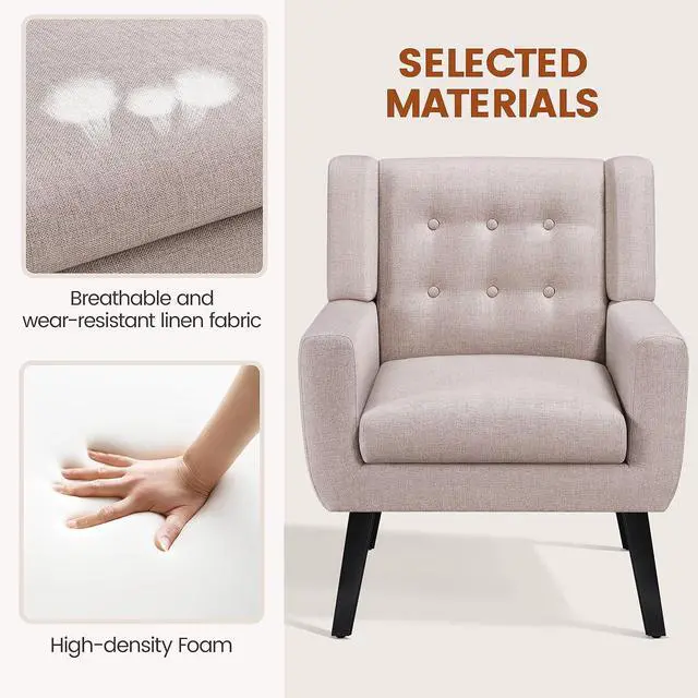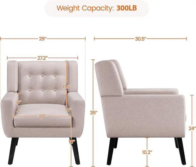 Solidly Constructed Armchair: Crafted from a frame made of solid wood & engineered wood, this classy armchair sports strong rubberwood legs, high-resiliency foam and breathable linen fabric for a steady and comfortable sitting or lounging experience. It can hold up to 300 lb