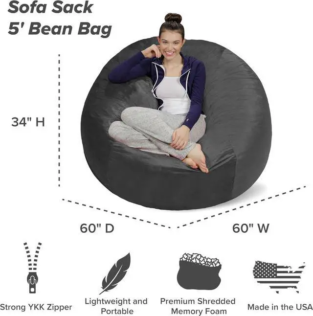 THE PERFECT BEDROOM ACCESSORY: Simple and soft, The Sofa Sack medium sized bean bag chair is the perfect addition to every nursery, playroom, childs bedroom, or basement. A nod to a 60s classic, this round bean bag is a timeless piece with a modern construct. Incredibly comfortable and highly functional, there is a reason bean bag furniture never went out of style. With a variety of beautiful colors to choose from, these luxury items wont distract or offset the decor of any room in the house.