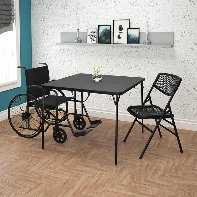 This folding card table measures 29.5 " in height also making it wheelchair friendly. For indoor and outdoor use