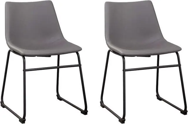 MID-CENTURY INSPIRED: These distinctive chairs with bucket seats upholstered in gray faux leather upholstery and tubular metal bases in a black finish have a charmingly vintage tone