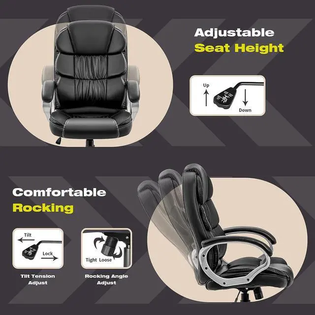Comfort: The office chair designed for comfort, high-density elastic sponge covered with skin-friendly PU leather, slightly concave cushion, and spacious backrest is fully ergonomically designed to make your spine fit perfectly with the whole seat, achieve the effect of completely relaxing the body.