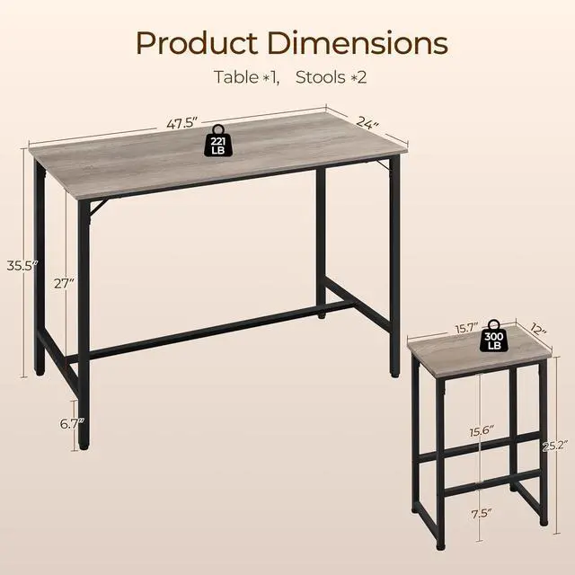 Sturdy Construction: The small kitchen table set is constructed of thick CARB P2-compliant MDF boards and a strong metal frame, making it capable of holding up to 221lb for the table, and another 300lb for the chair.