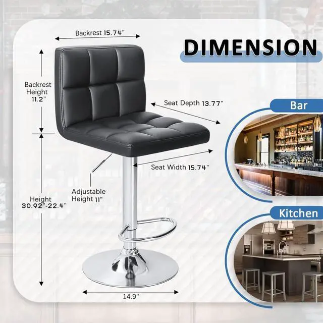Quality Material: The PU leather cushion bar stool is easy to clean and always look fresh, you' ll never have to worry about spilling something on your chair again and 3.3 inches high-density sponge provides you with a comfortable seat.
