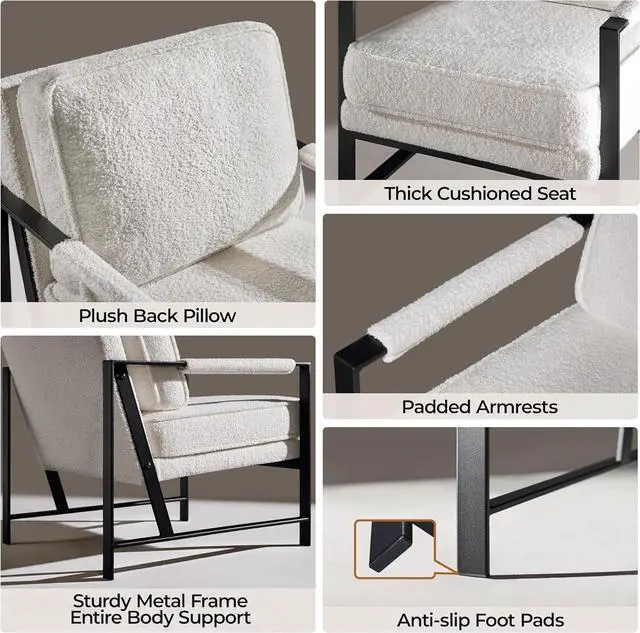 Plush & Supportive: The living room chair seat and backrest are well stuffed with soft and high-density foam, which helps to relieve muscle fatigue after a hard-working day. Compared with other accent chairs, this chair has a thicker cushion of up to 12cm/ 4.7 inch, providing you with great support and a plush sitting experience.