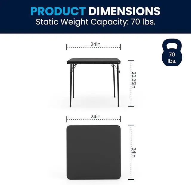 HEAVY DUTY: Commercial grade, powder coated metal frames with floor protector glides allow the table to hold up to 70 lbs. distributed weight and each chair holds up to 81 lbs. static weight