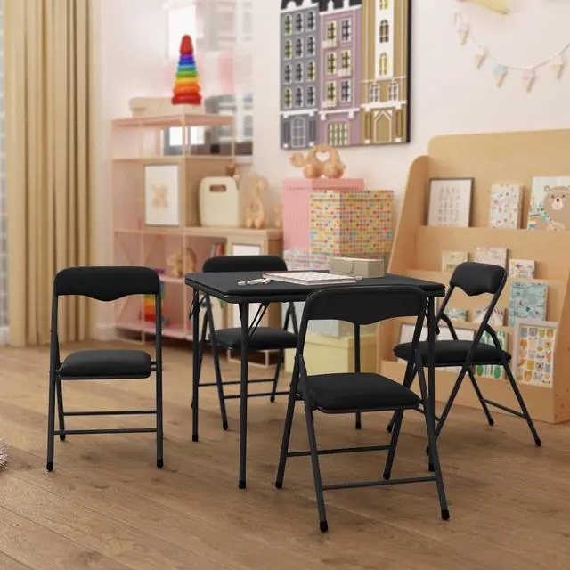 VERSATILE USE: Padded, vinyl upholstered table and 4 folding chairs perfect for little ones and ideal for puzzles, board games, parties, events or arts and crafts