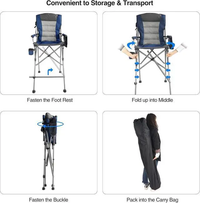 Heavy Duty & Portable: The talll folding chairs for outside is finished with thicker steel frame and Oxford, sturdy enough to hold a heavy people more than 300 lbs to use. Compact enough when folded into the carry bag, lightweight and portable to take 2 pack for outdoor activities, sports events.