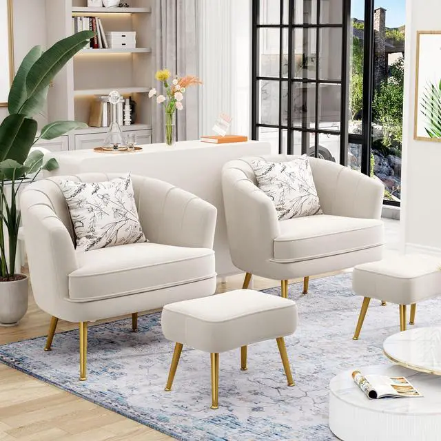 Comfortable Seat & BackrestThis modern accent chair is made of highly elastic sponge and covered with handpicked velvet. Both the backrest and cushion are well padded with thickened sponge, and the seat is very spacious, which is very comfortable to seat for a long time. Comes with an ottoman great for small spaces, the ottoman can also be arranged as a seat alone.