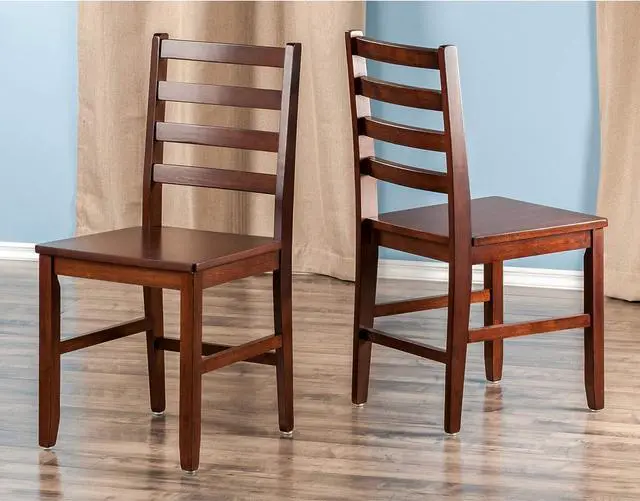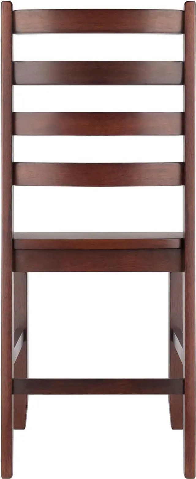Made of Solid Wood Classic Ladderback design Max weight limited 220 Lbs. Made from solid wood in walnut finish. Assembly Required. Seat height is 17.98 " Assembly required