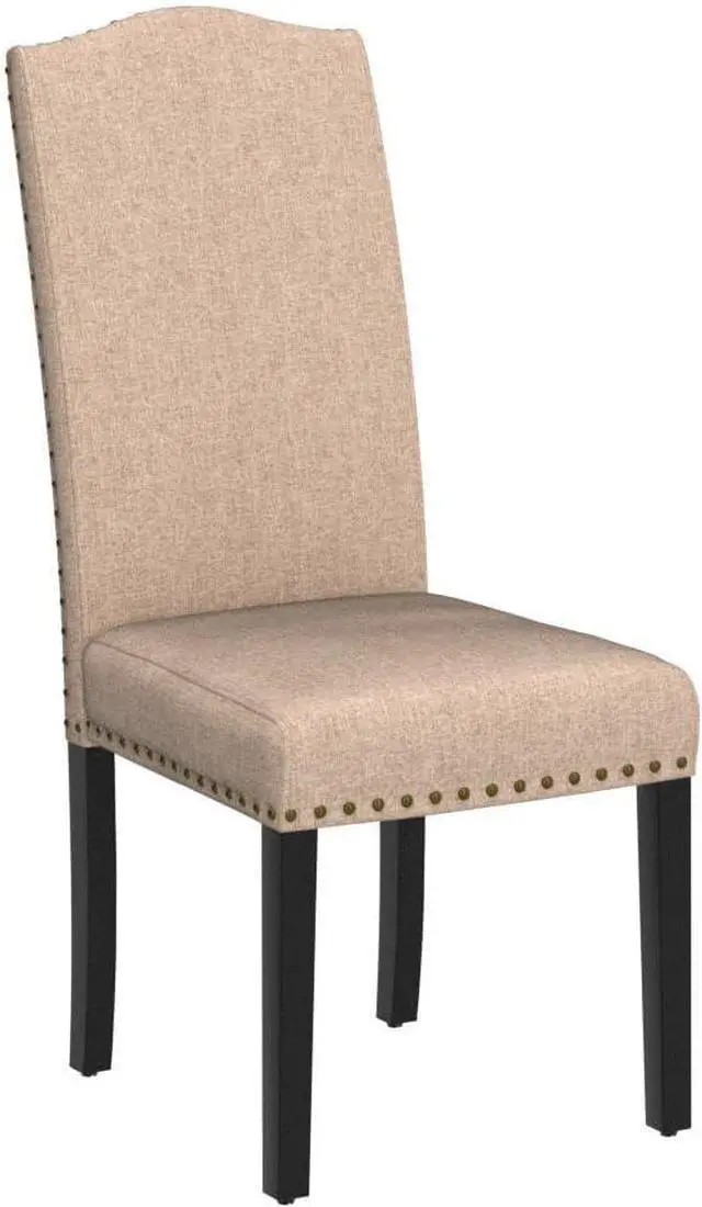 Luxurious Look: Inspired by Parsons-style design, this pair of kitchen chairs come with a slightly arched top and showcases bronze-colored nailhead trim on the edge for a classic look. Simple lines combined with an armless design bring the piece a sleek and modern feel.