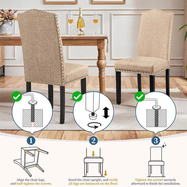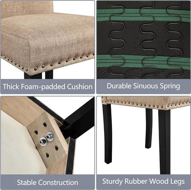 Well-Stuffed & Supportive: These fabric dining chairs are designed for ultimate comfort. The seat and back are well padded with high-density foam and wrapped in soft linen upholstery, making every moment enjoyable and comfortable.