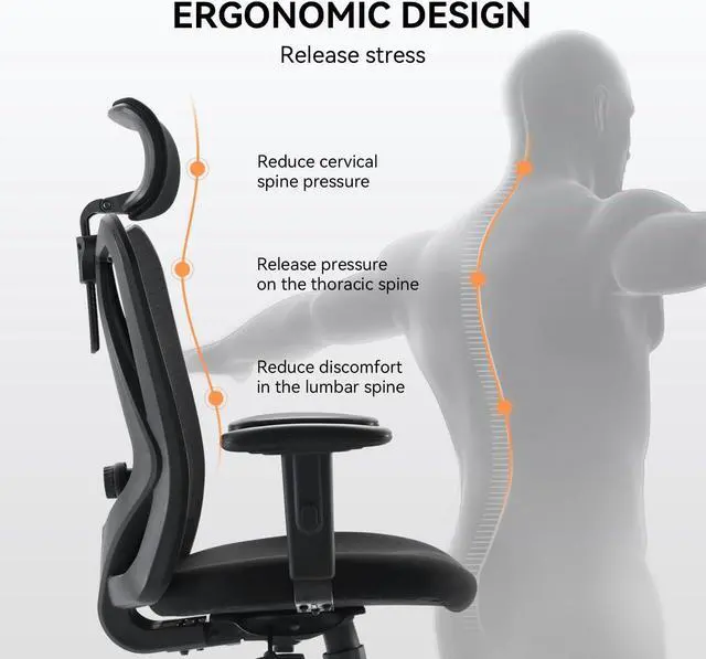 Ergonomic Office ChairXUER office chair features an S-shaped backrest that fits your lumbar spine better, protecting your back and shoulders from pain and fatigue from prolonged sitting. W-shaped design sponge cushion, reduce the pressure on your legs, suitable for long-term sedentary work up to 8 hours a day.