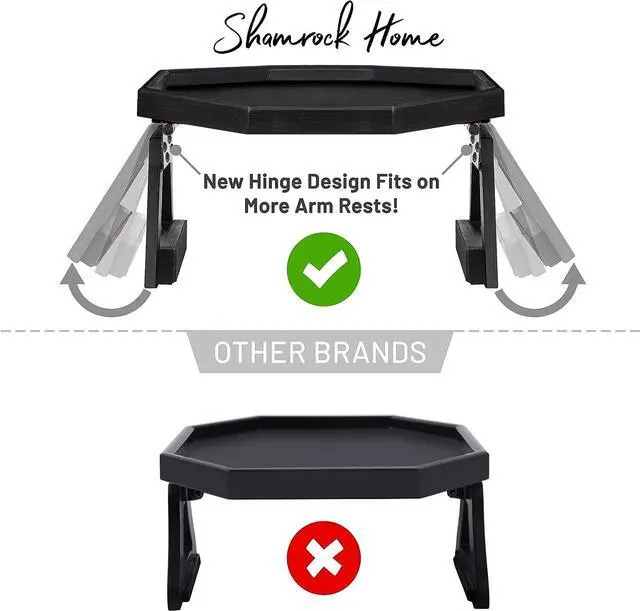 The Most Stable Wide Arm Table: With longer legs, friction-generating rubber grips, and wide-profile hinge, The Shamrock Home Couch Table isnt just more stable, but it also covers the most arms!