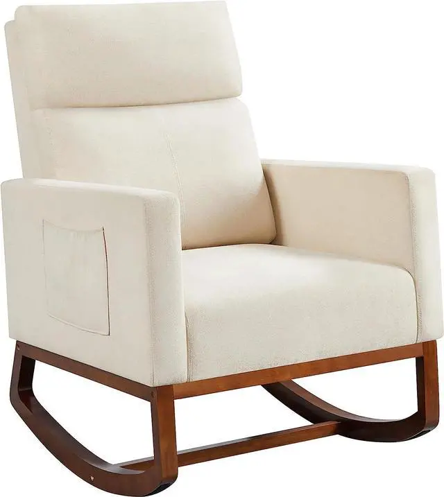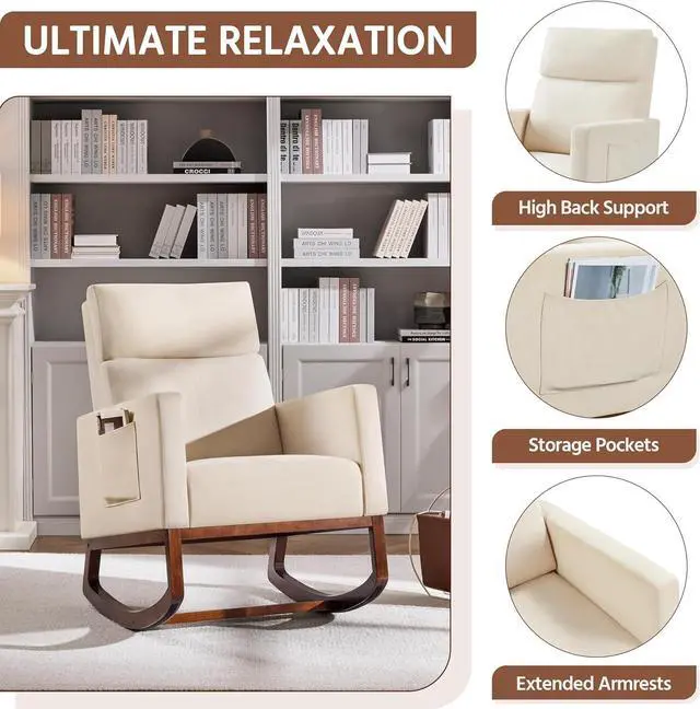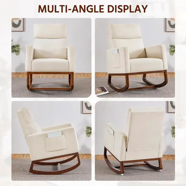 Side Pocket & anti-tipping stopper: The rocking chair with side pocket keeps your recently read books or magazines close at hand, creating a perfect reading nook for you. The installed plastic stoppers at the ends of chair legs prevent you from tipping backward.
