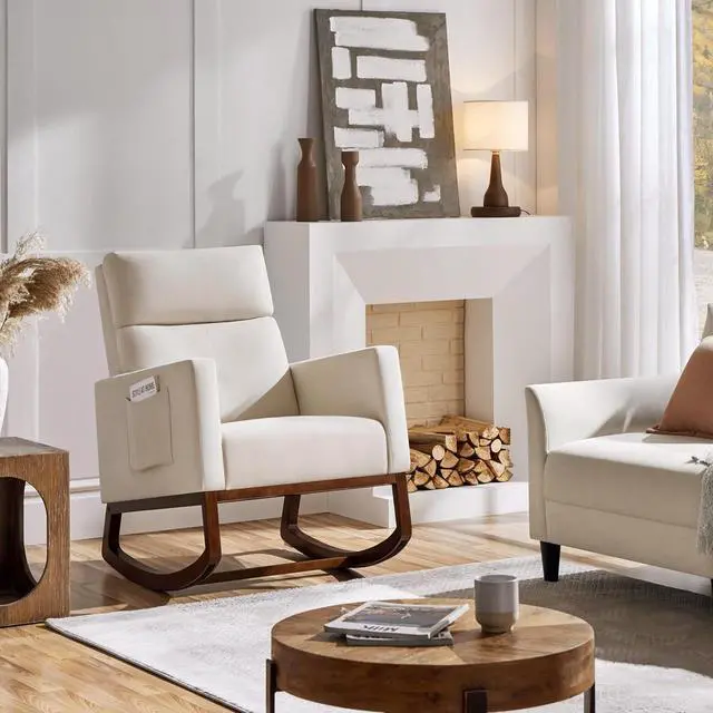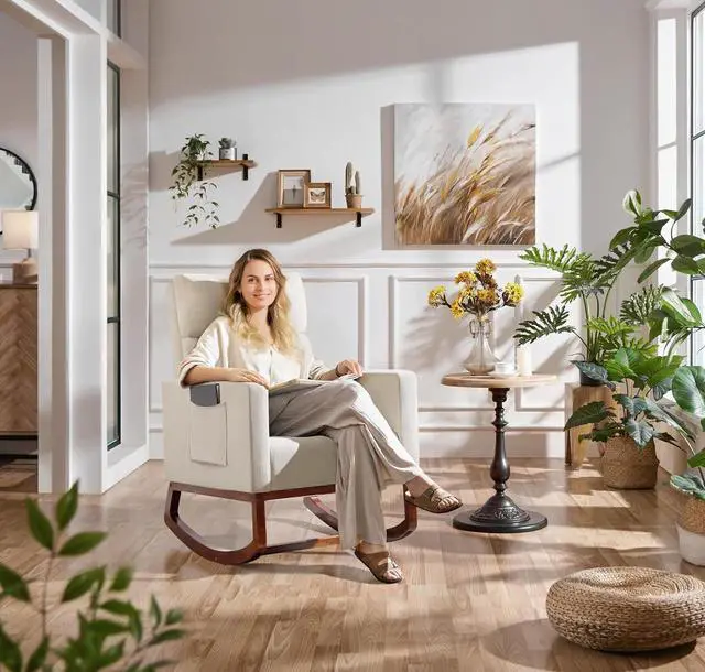 A new sitting position: To cozy up your space, this chair has a gentle rocking motion that allows you to rock back and forth effortlessly. Study wood rocking base ensures your safe using experience.