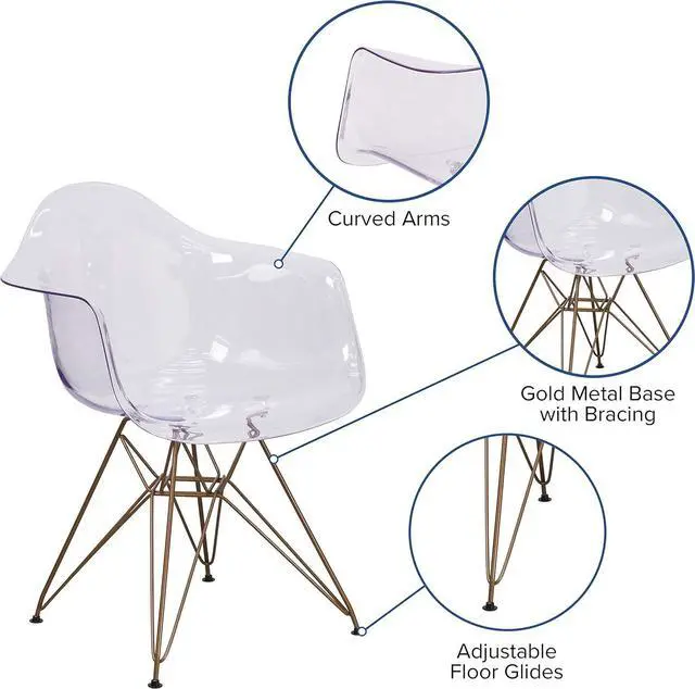 If you need seating but don' t have much space this transparent side accent chair will be a lifesaver. Add this versatile chair anywhere in your home or office. This arm chair is well suited to complement any setting as a single chair or pair.