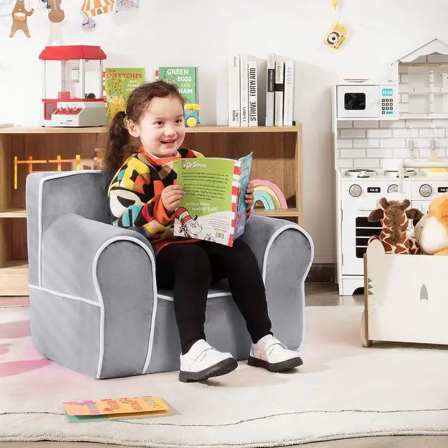 Kids: This kids sofa is designed with beautiful color( pink/ blue/ grey/ navy blue), which can attract kids attention. Besides, with thickened high backrest, round safety armrests and spacious seat, it creates a safe and cozy place for kids to read books, eat snacks, draw pictures and play games.