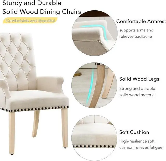 STURDY AND DURABLE: The overall structure of this upholstered dining room chair features a solid wood frame. The fabric is durable linen that covers the backrest and seat cushions. It' s very durable. Four solid wood legs support the entire dining room chair, Weight