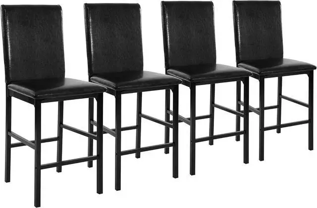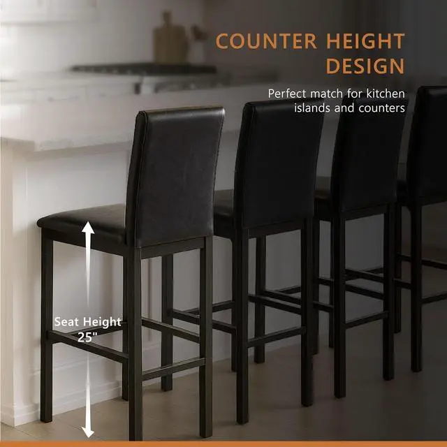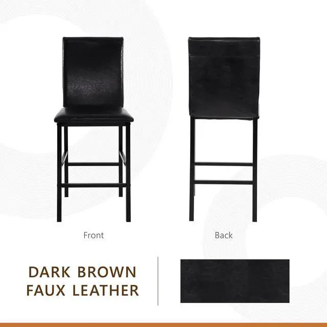 Elegant Design: Upgrade to a modern contemporary kitchen counter chairs set of 4 with foam padded seat and solid back. The counter height dining chairs set of 4 features a sleek dark brown faux leather upholstery, perfect for that modern look.