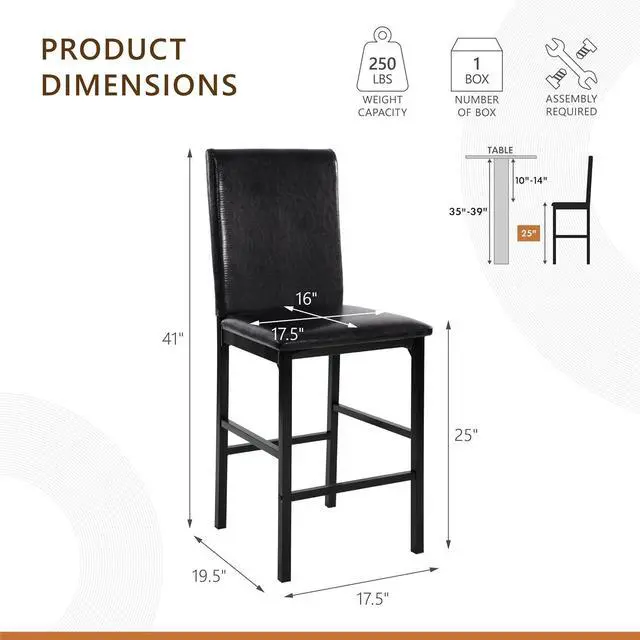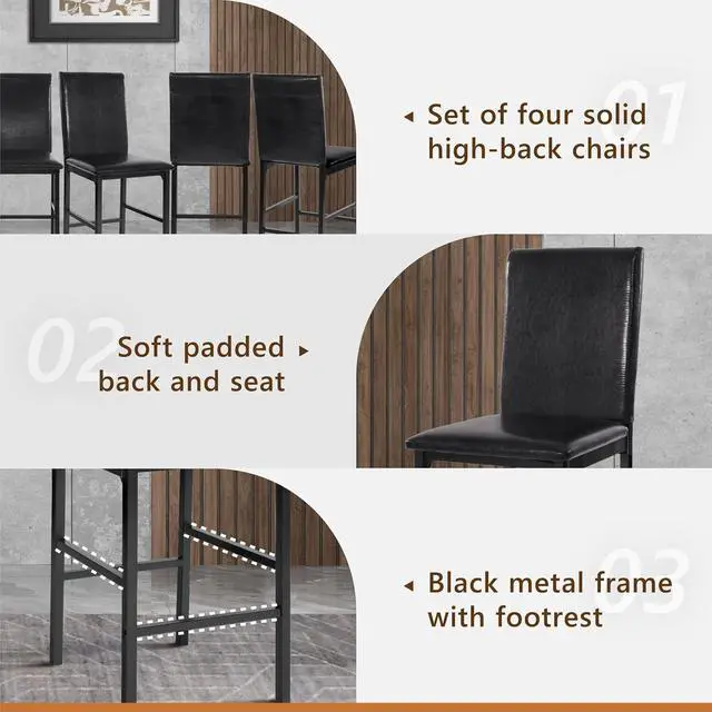 Sturdy Construction: Our traditional kitchen high table chairs set of 4 features heavy duty black metal frame, dark brown faux leather upholstery, and footrest, ensuring durability and comfort. Each chair supports up to 250lbs for max weight capacity, making them ideal comfortable kitchen high chairs set of 4 for long family gatherings.