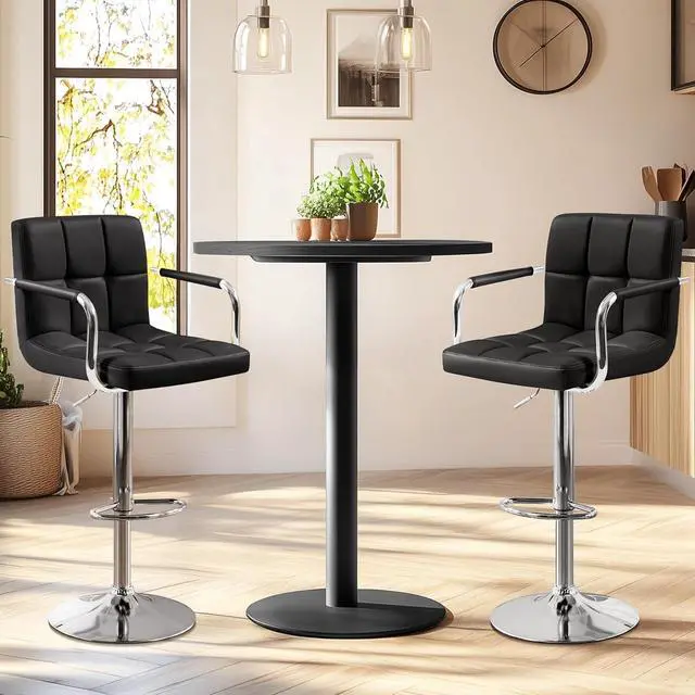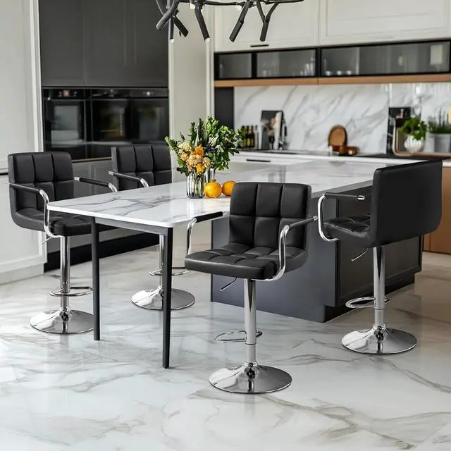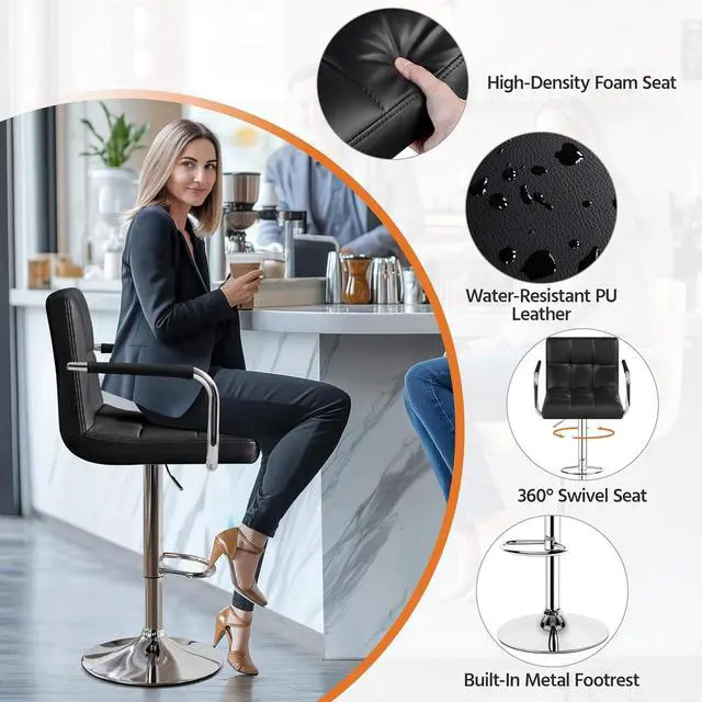 Heavy Duty Stools: This set of adjustable bar chairs is made of premium galvanized steel and PU leather as well as filled with thick foam. The special surface treatment of the legs, armrests and footrest makes them uneasy to oxidate or corrode. Each of the stools is capable of holding up to 150 kg/ 330.7 lb.