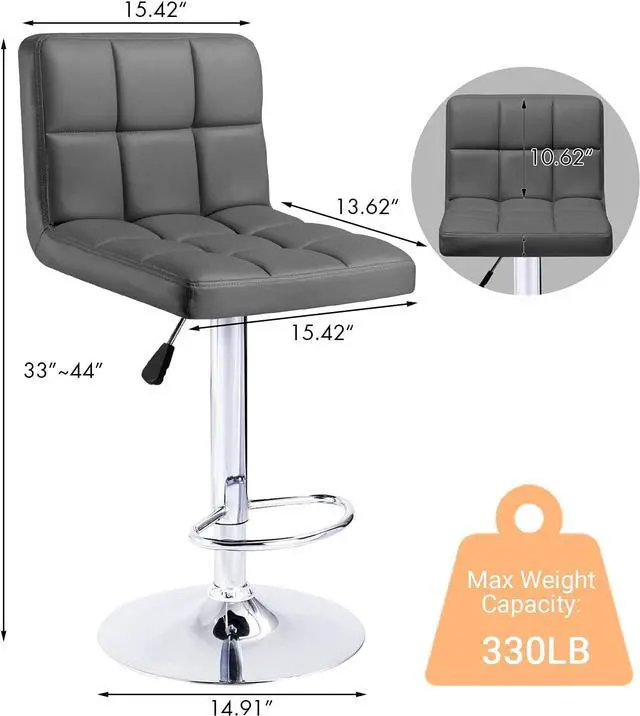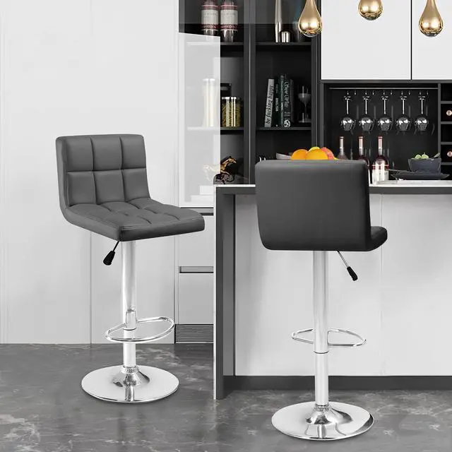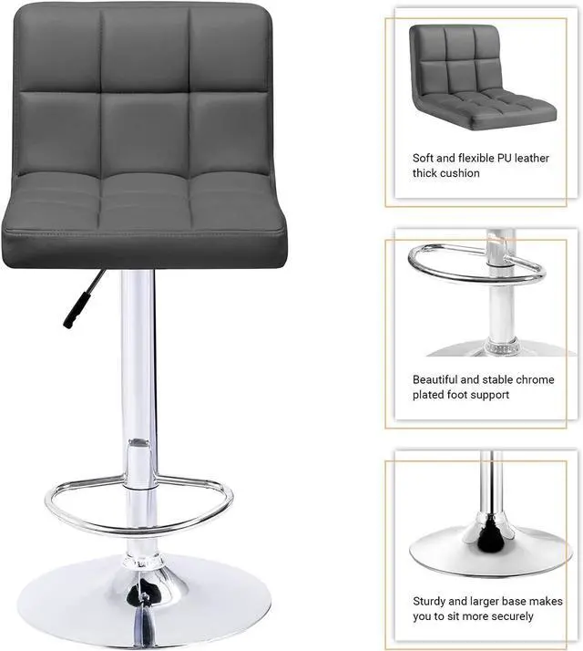 Elegant and stylish, the gray bar stool' s premium feel makes it able to handle a variety of home styles and enhance the style of bedrooms and living rooms. With a silver base makes the bar stool stylish and elegant.