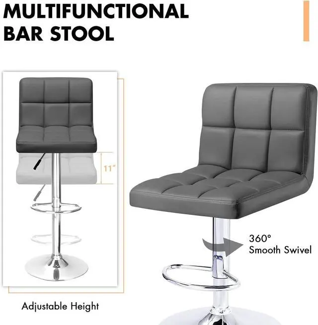 High quality materials, the material used to make base of this adjustable bar stool is more harder than ordinary bar stool, making the bar stool stable and not shaky, so you dont need to worry about safety when using it. Seat cushion made of thickened foam cushion and artificial leather, soft and comfortable, just as comfortable as sitting on a sofa.