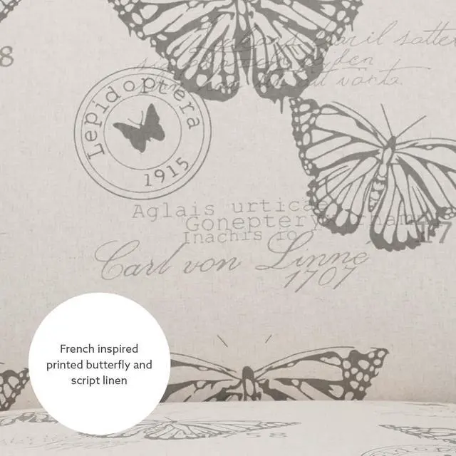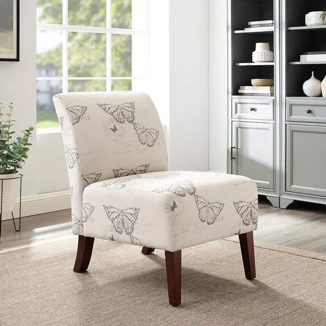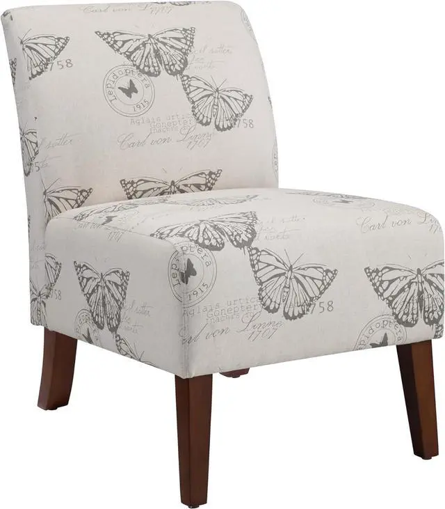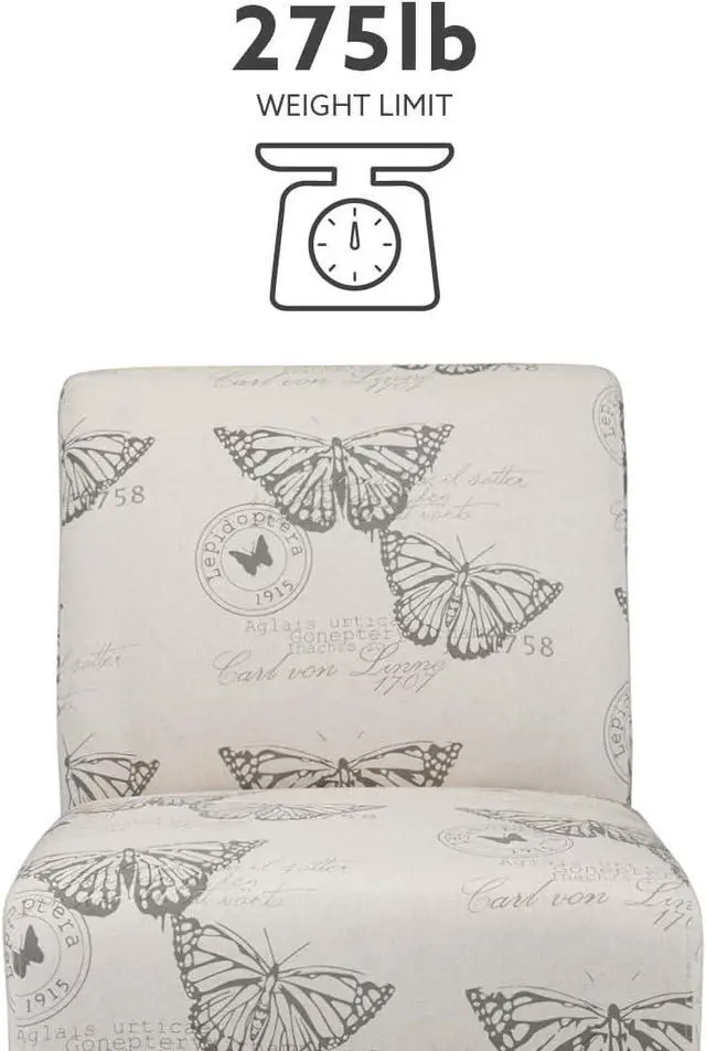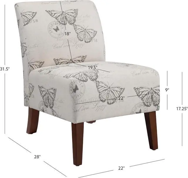 Butterfly Pattern Linen Imported Stylish seating option for any room in your home Sturdy and Durable Plush seat and chair back Dark Espresso Finish Assembly required Butterfly Linen Upholstery