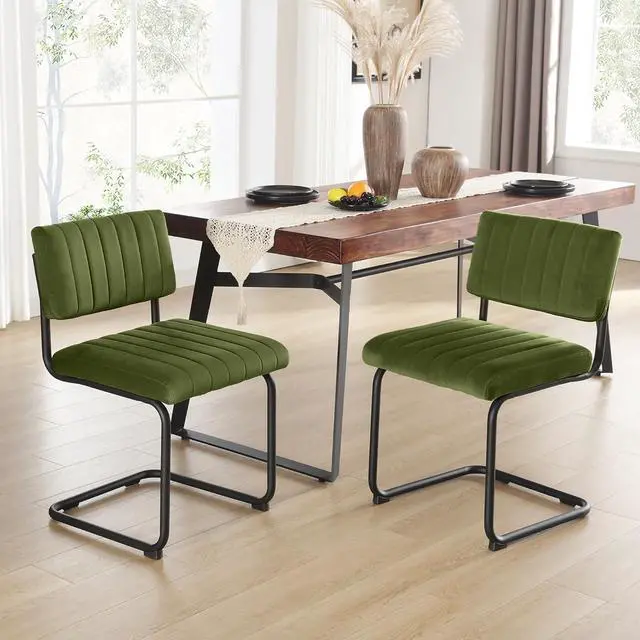 Premium Mid-Century Modern Dining Chair - Featuring a classic cantilever silhouette, this elegant chair combines timeless mid-century design with modern comfort. Upholstered in soft velvet and padded with a 2.8 " thick high-density cushion, it offers a plush, indulgent seat for your dining room, kitchen, or casual living space