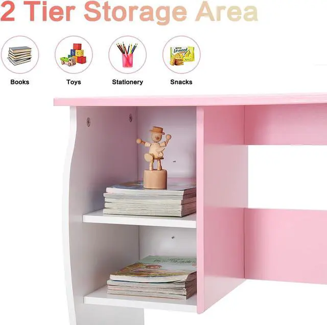 2 Layer Open Shelves StorageThe open shelf and storage space provides extra storage for books, pencils, crafts, or other Supplies and keeps your work surface clutter-free, offering a comfortable place to study.