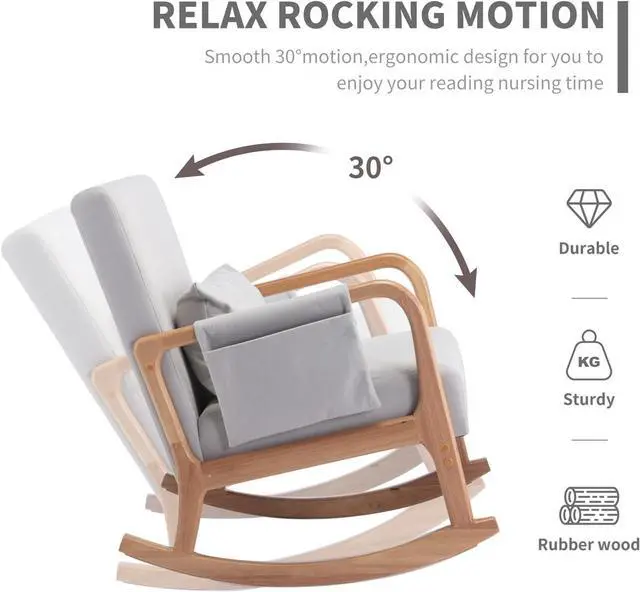 ROCKING CHAIR NURSERY ]: The nursery rocking chairs comes with a lumbar pillow for mom, which can provide more comfort and support. You can store nursery items such as bottles and small toys in the side pockets, and enjoy the stability and quietness of the glider chair. By the comfort and functions, its also a part of nursery room decor for new moms to make child a sleep without hustle.