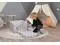 This 2-in-1 convertible sofa to lounger measures 16.5 x 18 x 15.7 in. For children aged 9 months to 4 years. Made in EU