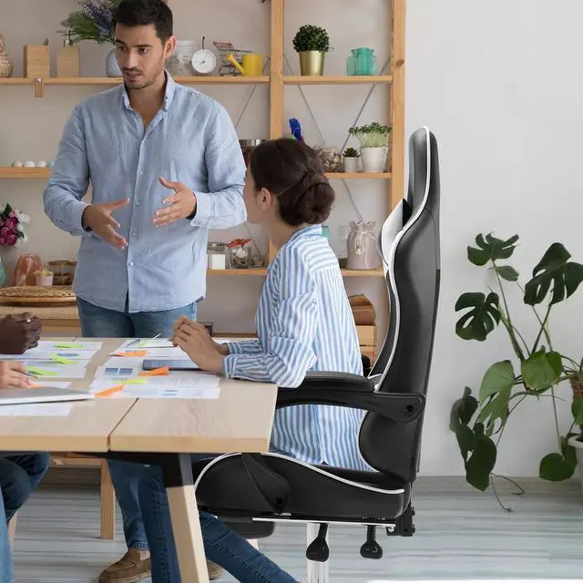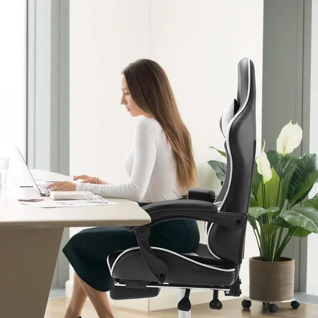 - Ergonomic design with contoured high back, adjustable headrest, and lumbar pillow for full-body support, reducing strain on your spine and enhancing comfort during extended gaming or work sessions.