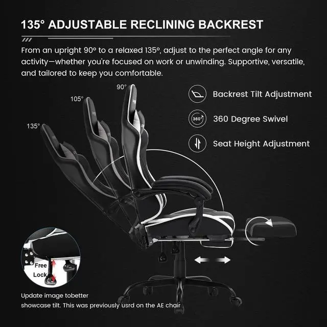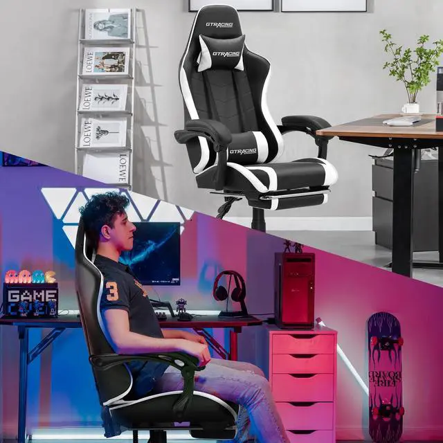 The DIXSG GTWD-200 Ergonomic Gaming Chair with Adjustable Pillows and Footrest is the ultimate choice for gamers, professionals, and students seeking unparalleled comfort and style. This home and office gaming chair is meticulously designed with the user in mind, offering a blend of modern aesthetics and ergonomic support. The GTRACING GTWD-200 features adjustable pillows and an upholstered cushion, providing superior comfort for the cervical and lumbar spine. Whether you're engaged in an intense gaming session, deep into your studies, or working long hours, this chair ensures maximum support and relaxation. The ergonomic footrest complements the chair's reclining function, allowing for a full-body seating experience that promotes relaxation and well-being. Elevate your space with the sleek and modern design of the GTRACING GTWD-200 Ergonomic Gaming Chair. Not only does it enhance the visual appeal of your room, but it also delivers a seating experience that is second to none. This chair can accommodate up to 290 pounds, making it ideal for gamers and users of all sizes. Upgrade your gaming and office setup with the GTRACING GTWD-200 Ergonomic Gaming Chair and experience a new level of comfort and sophistication. This chair is the perfect blend of form and function, making it a must-have for anyone looking to enhance their workspace or gaming area. With the GTRACING GTWD-200, you are not just buying a chair; you are investing in your comfort and well-being. Make the smart choice today and transform your everyday seating experience with GTRACING.