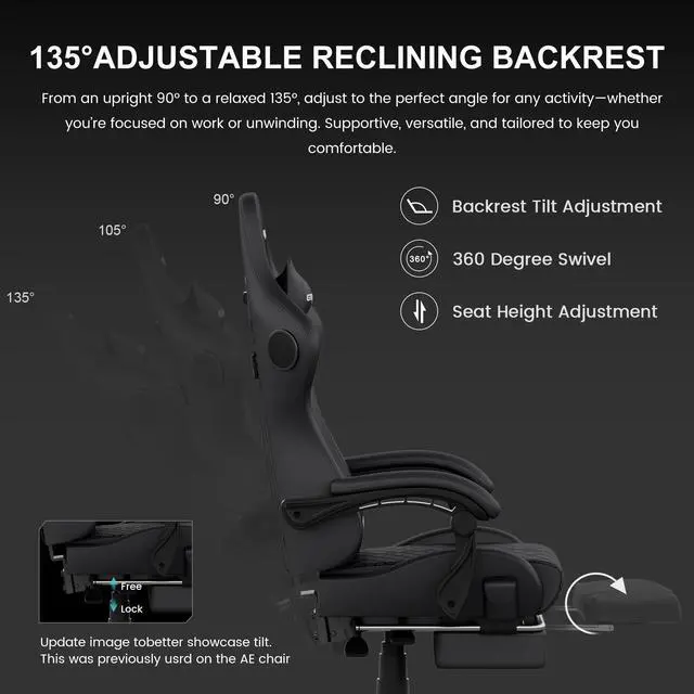 - Next-Gen GTRACING Black Gaming Chair for Enhanced Immersion
