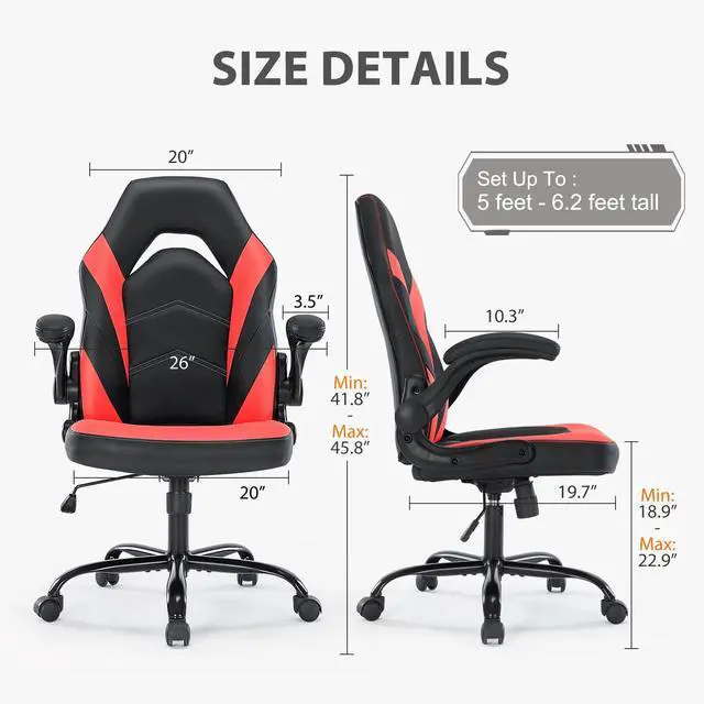 - ADJUSTABLE HEIGHT & FLIP-UP ARMREST - The height of the racing chair is adjustable (adjustment range: 18inch-22inch), and the 90° flip-up armrests help you save space and provide extra support for your arms to relax. When the armrests are flipped up and locked in an upright position, the chair can be easily pushed under the table. Loosen the button underneath the chair to activate a rocking motion.
