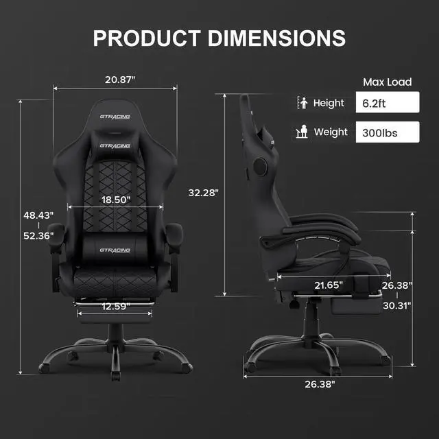 - Next-Gen GTRACING Black Gaming Chair for Enhanced Immersion