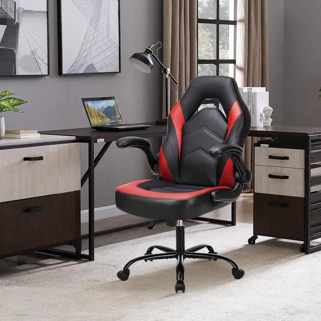 - ADJUSTABLE HEIGHT & FLIP-UP ARMREST - The height of the racing chair is adjustable (adjustment range: 18inch-22inch), and the 90° flip-up armrests help you save space and provide extra support for your arms to relax. When the armrests are flipped up and locked in an upright position, the chair can be easily pushed under the table. Loosen the button underneath the chair to activate a rocking motion.