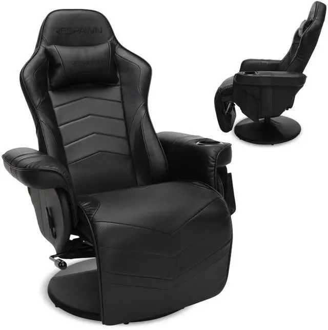 - RECLINE, SWIVEL AND STAY SUPPORTED: With a pedestal base for stability, this gaming recliner offers 135° recline and 360° swivel. A racing style gaming chair with lumbar support to deliver the feel of a comfortable recliner chair for any setup.