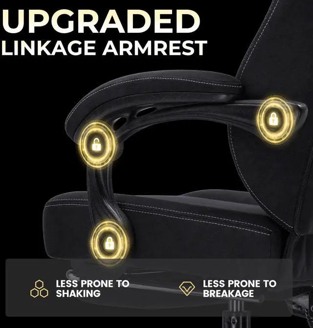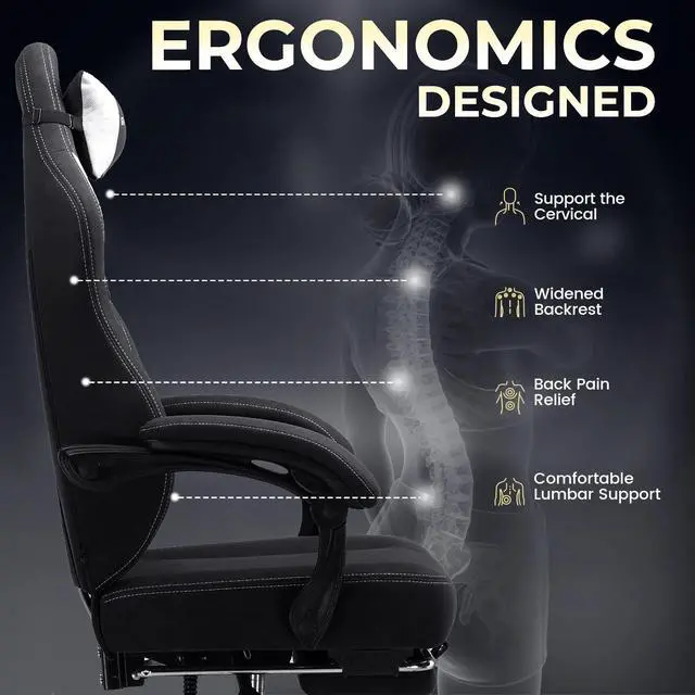 - Ergonomic Design: This gaming chair with footrest has a wide and soft lumbar support to provide maximum comfortable support for the back, linked armrests, thickened cushions, and synchronous adjustment to better support the arms and adapt to the sitting posture. With a foldable footrest, you can customize your own seating pleasure.