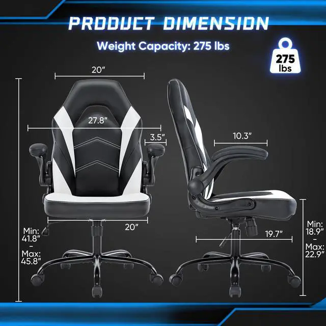 - STURDY AND DURABLE - Our racer gaming chairs are made of sturdy chrome-plated metal with a maximum load-bearing of 275 lbs. The base's pentagonal casters are right-angle multi-gimbal wheels, which can ensure the stability and mobility of the chair. The silent multi-direction casters can swivel 360 degrees while protecting the floor.