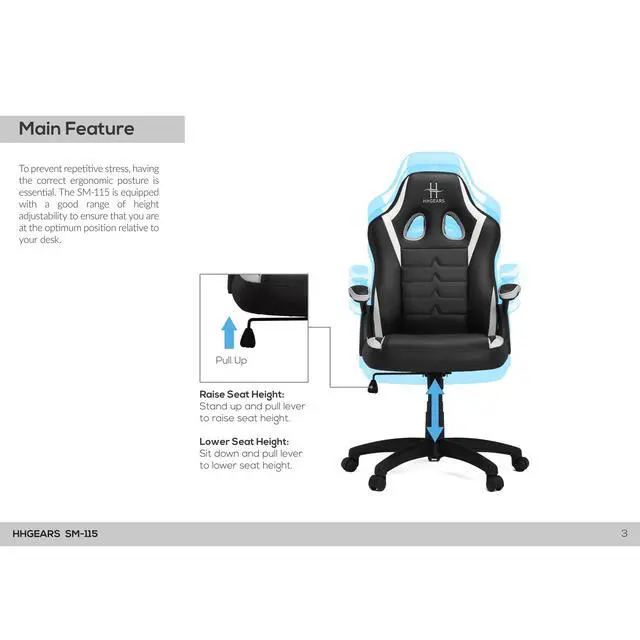 Get in the game while seated in this Vertagear HHGears Racing Chair. Aside from its stylish design, this chair boasts adjustability and ergonomics to help keep you comfortable as you battle it out on screen. Overall Dimensions: 49-9/16"H x 19-1/16"W x 21-1/2"D. Weight capacity tested to support 200 lb. Ergonomic design with Cold Cure foam provides long-lasting cushioning. Waterfall seat cushion slopes slightly downward to help reduce stress on your legs. PU leather upholstery creates an upscale appearance. Pneumatic lever makes seat-height adjustments a snap. Tilt tension adjustment helps you find an ideal position for gaming. Armrests lend a soft feel. Rubber casters roll smoothly and quietly over most floors. Assembly required. White detailing adds a pop of color. Tested to meet ANSI/BIFMA Performance Standards - Manufacturer testing has been conducted on this product to meet specific performance requirements and safety standards set forth by the American National Standards Institute (ANSI) and the Business and Institutional Furniture Manufacturers.