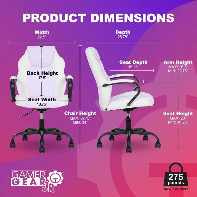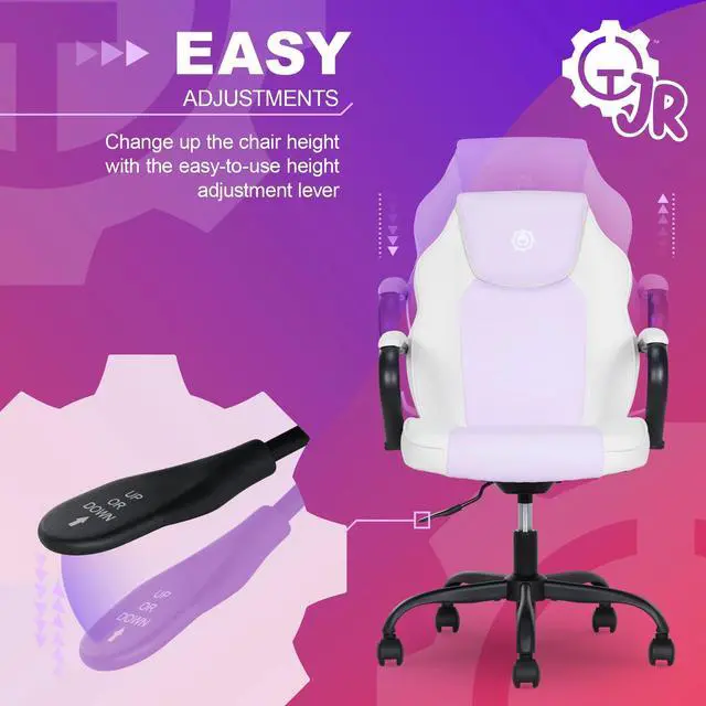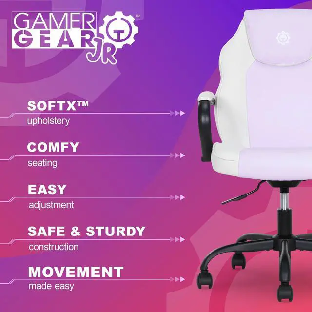 Adventure awaits! For little Xplorers with big imaginations, the Gamer Gear Jr. Xplorers gaming chair is the perfect sidekick for a smooth switch from homework to playtime. With bold color-block styling and SoftX upholstery, this chair is made to bring extra flair to any young gamers room! Comfort is key with the Xplorers supportive foam seat cushion and padded armrests shaped for a natural, comfy fit. Plus, with easy height adjustments and 360° swivel wheels, this chair grows right along with your junior gamer and keeps up with their every move. Deck out their desk area with the Gamer Gear Jr. Xplorer Chair, a serious gaming chair, perfectly sized for kids with big dreams.