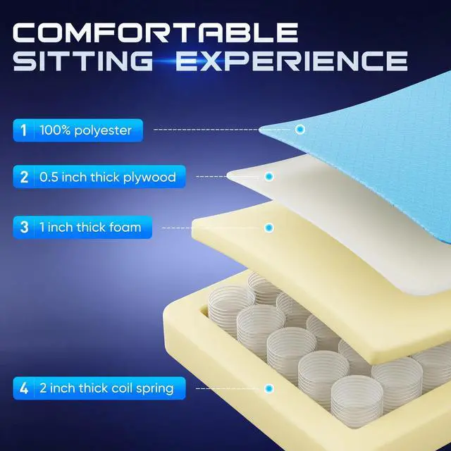 - Sofa-Inspired Cushioning The seat is equipped with individually wrapped pocket springs, offering resilient bounce and adaptive pressure relief. Enjoy the same plush comfort youd expect from a premium sofa during long gaming or work hours.
