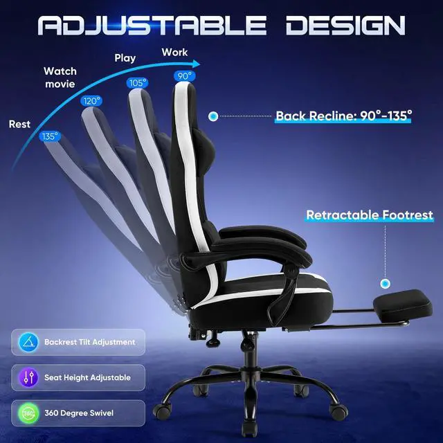 - Flexible Recline & Height Control Switch from focus to relaxation with an adjustable backrest (90°135°) and 4" height lift. The upgraded gas lift system ensures smooth transitions and reliable stability at every angle.