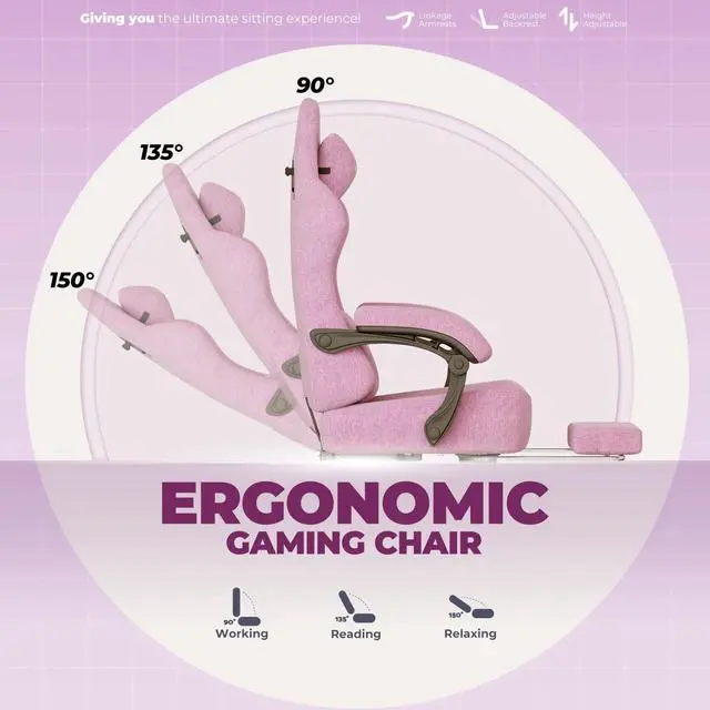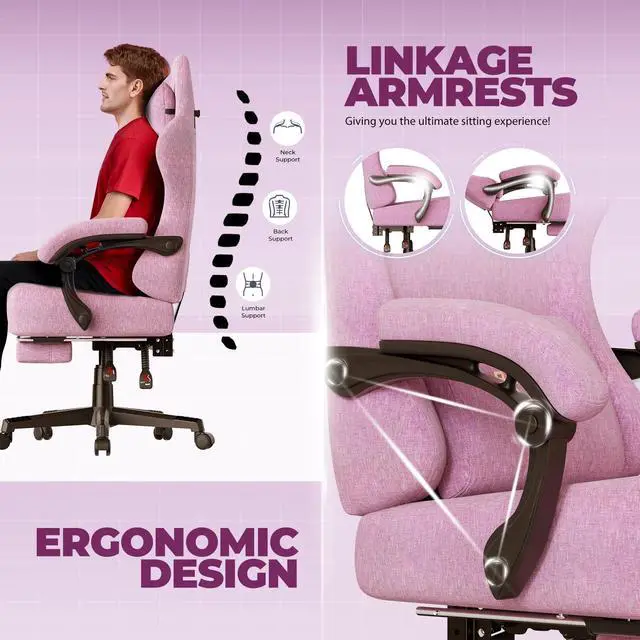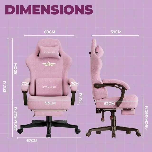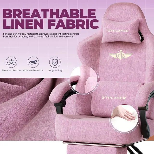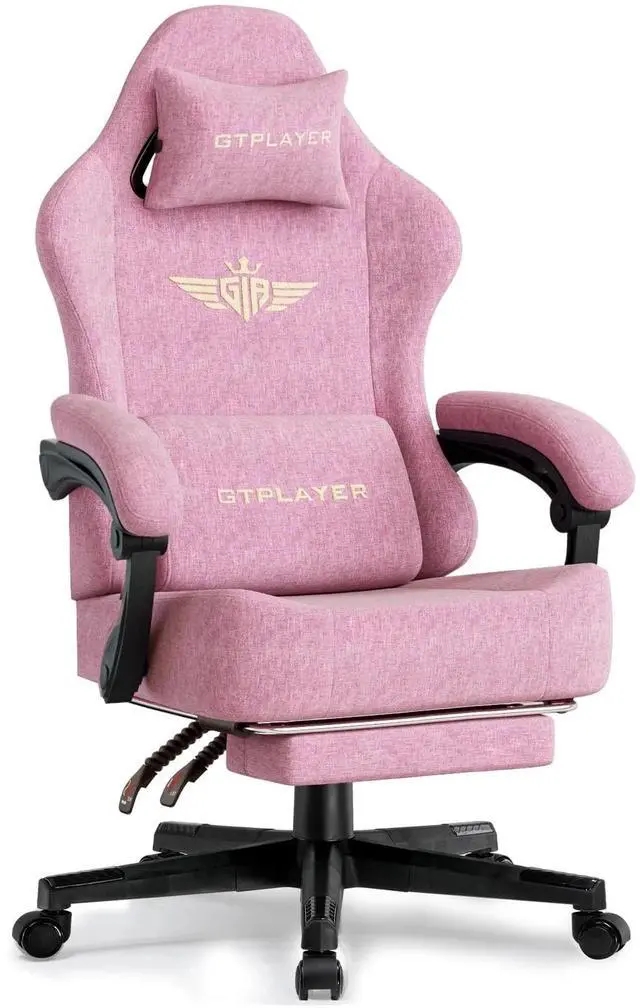 Experience comfort and support with the GTPLAYER Fabric Gaming Chair, built for big and tall users up to 350 lbs. Featuring a high back, adjustable lumbar support, and a fold-out footrest, its perfect for gaming or office use. The cushioned seat with pocket springs ensures long-lasting comfort. Recline from 90° to 150° and adjust your height easily with the SGS-certified level 3 gas lift. Enjoy ergonomic design and full swivel mobility in one stylish chair.