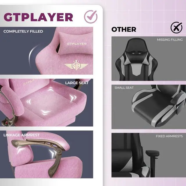 1. Independent Integrated Spring Padding: GTPLAYER gaming chair is equipped with high-quality integrated spring padding that provides optimal comfort and support while gaming and working. This advanced seating technology provides dynamic support and adjusts to your position to ensure long-lasting comfort and reduce fatigue during long gaming sessions.